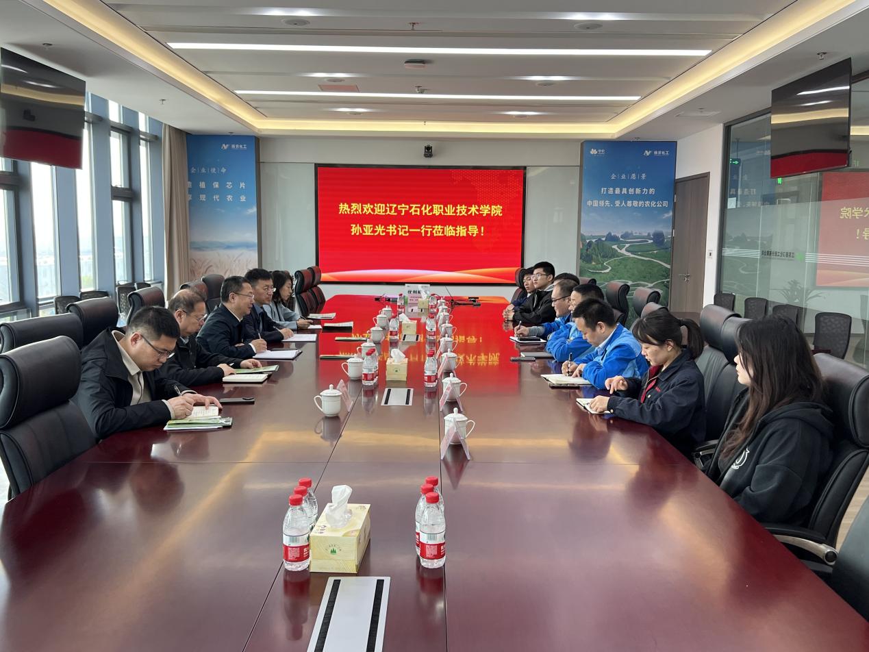 为落实教育部“访企拓岗促就业”专项行动部署要求,落实就业工作“一把手”工程,全力促进毕业生高质量充分就业,4月26日,学校党委书记孙亚光、副院长杨连成、刘朝辉带队到中国中化江苏扬农化工股份有限公司(辽宁优创)开展访企拓岗专项行动。扬农股份党委委员、副总经理、辽宁优创党总支书记、总经理王明坤,辽宁优创党总支副书记、工会主席、综合管理部主任吴士昊,扬农股份人力资源管理部副主任李彩娟、招聘经理徐文秀陪同调研。