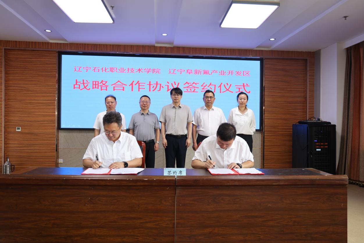 为深化“政行园企校”协同创新,推动产教融合高质量发展,7月11日,学校党委书记孙亚光、党委副书记、院长于忠党、副院长刘朝辉带队到阜新氟产业开发区调研并签署战略合作协议。阜新市副市长杨占旭、阜新市政协副主席、科学技术局局长张世辉、阜新高等专科学校校长李妮、副校长李春雨、辽宁阜新氟产业开发区党工委副书记、管委会主任张汉君、副主任郭超参加有关活动。