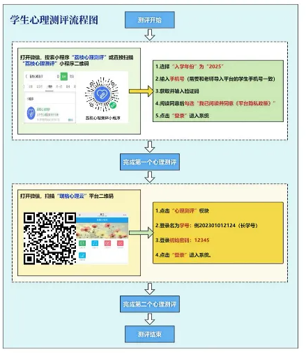 根据教育部普通高等学校学生心理健康教育专家指导委员会的要求,结《全面加强和改进新时代学生心理健康工作专项行动计划(2023-2025年)》以及《教育部办公厅关于加强学生心理健康管理工作的通知》的指导精神,我院现组织开展2025级全体新生心理健康测评工作。本次测评将通过“全国大学生心理健康综合服务平台”和“瑞格心理教育信息化管理系统”实施,经学院领导同意,现将具体安排通知如下: