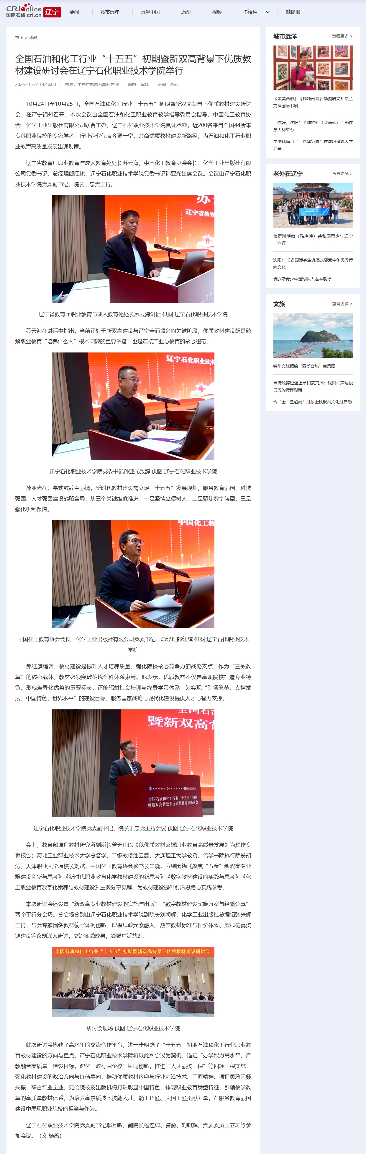 中央广电总台国际在线 | 全国石油和化工行业“十五五”初期暨新双高背景下优质教材建设研讨会在辽宁石化职业技术学院举行