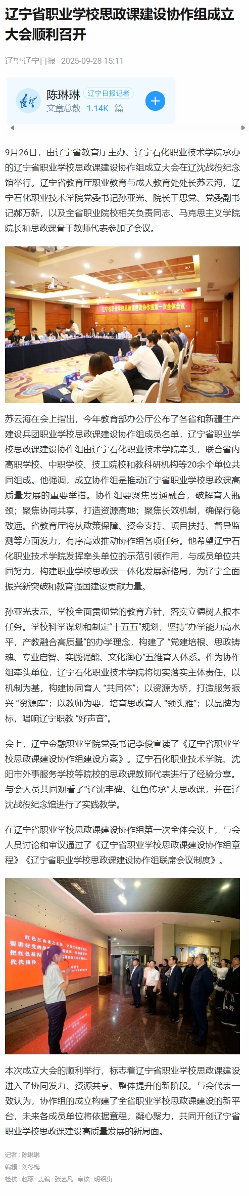 辽望 辽宁日报 | 辽宁省职业学校思政课建设协作组成立大会顺利召开