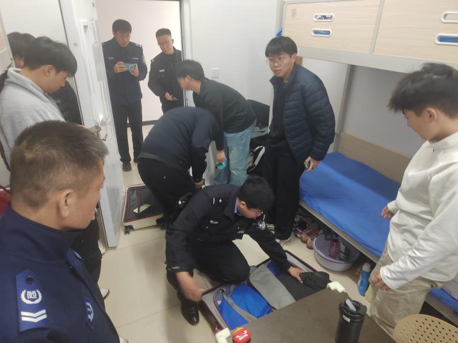 检查过程中,联合检查组采取“不打招呼、直奔现场”的方式,对男生宿舍楼部分寝室进行细致排查。干警们逐一检查学生床铺、书桌、行李箱及储物柜,并耐心向学生普及携带管制刀具的危害及法律后果,引导学生增强安全防范意识。经全面排查,未发现任何管制刀具或危险物品,宿舍整体秩序良好。