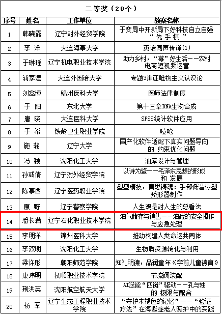 近日,2025 年全省高校优秀教案评选结果正式揭晓,潘长满老师《油气储存与销售 —— 油罐的安全操作与应急处理》教案,以精巧的教学设计与鲜明的实践特色脱颖而出,荣获省高校优秀教案二等奖,充分展现学校在职业教育教学改革与师资队伍建设中的亮眼成果。