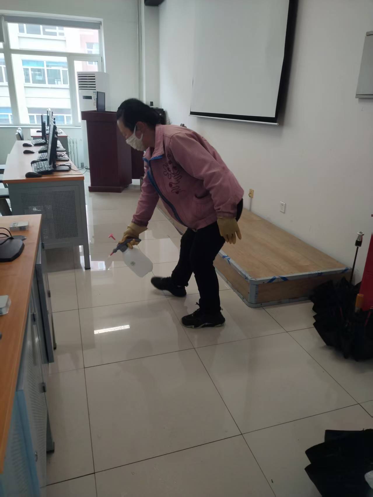 春季气温回升、湿度增大,是呼吸道、肠道传染病高发季节。后勤服务与管理中心提前谋划、周密部署,科学划定消杀范围,严格按照卫生防疫相关规范,选用安全高效的消杀药剂,规范执行配比与操作流程。重点对教学楼、宿舍楼、图书馆、教室、寝室等人员密集场所及公共区域开展全面消杀,针对卫生间、楼道、电梯间、卫生死角、下水道口等病菌易滋生区域进行强化处理,确保消杀精准到位、不留任何盲区。