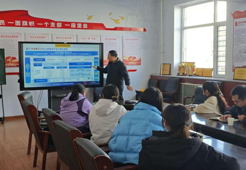 在交流环节,化工装备技术教研室教师与企业专家围绕化工装备产业展开深度研讨,聚焦产业人才需求定位(如紧缺岗位缺口、技能等级要求)、核心岗位梳理(如装备设计、运维调试、工艺优化等)、岗位能力标准构建(含专业技术能力、工程实践能力、跨岗位协作能力)及课程资源支撑体系(如实训项目开发、校企共建教材、数字化教学资源匹配)四大核心议题,交流氛围热烈且观点务实,最终形成多项贴合产业实际的共识,为后续人才培养与产业需求精准对接奠定坚实基础。