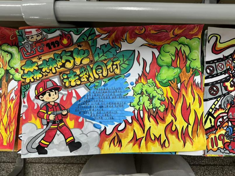 为强化森林防火意识与法治观念,我社成功举办手抄报活动。活动期间,同学们积极参与,以画笔诠释森林防火知识与相关法律法规,作品主题鲜明、内容丰富。通过此次活动,同学们深入学习了《森林法》等相关法律条文,掌握了森林防火基本常识与应急技巧,有效提升了法治素养和安全防护意识。同时,活动以艺术形式传播法治理念,营造了“森林防火、人人有责”的良好氛围。