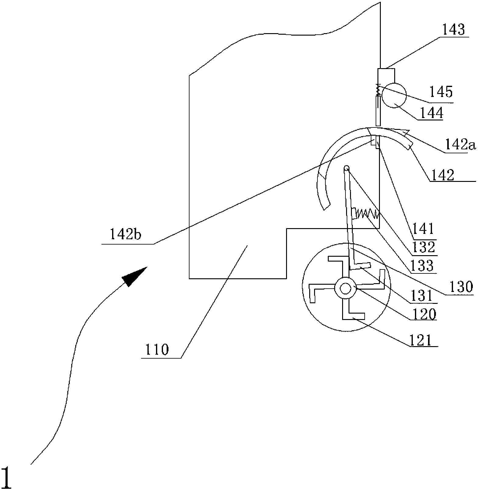 本实用新型公开了一种防倒行行李箱。包括:行李箱本体,其下部设有箱轮;挡轮,其与所述箱轮的轴连接,在所述挡轮上设有多个轮齿,在所述轮齿的末端设有弯折部;弯杆,其上端铰接在挡轮上方的行李箱本体上,弯杆的下端插入所述挡轮的轮齿之间,弯杆的下端与所述挡轮的轮齿相匹配;第一弹性件,其一端固定在行李箱本体上,另一端固定在弯杆中部,用于为弯杆复位提供回复力。本实用新型的有益效果是:设有挡轮和弯杆,用于限制箱轮单向运动,防止倒行时,产生危险;设有弧形板,通过弧形板可将弯杆与挡轮分离,实现取消弯杆对箱轮单向行驶的限制,使箱轮能够正常倒行。