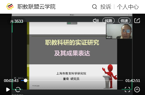 此次课程由上海市教育科学研究院研究员董奇专家主讲,主题为“职教科研的实证研究及成果表达”。