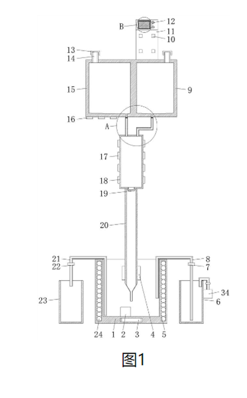 本实用新型公开了一种全自动酸碱值测定装置,属于化学实验产品分离提纯技术领域,包括反应罐,本实用新型通过设置反应罐、颜色反应器、小型离心机马达、待反应原料罐、第一吸液泵、第一吸液管、第一原料罐、电钮开关、操作面板、电钮键、进料管、第二原料罐、第一微型马达片、第二微型马达片、搅拌管、第一出料口、第二吸液管、第二吸液泵、废液罐、连接管、第二出料口、第三出料口、称重管、重量感应器、电子显示屏和指示剂储罐,在这些结构的相互配合下,实现了自动化程度高的功能,既可以避免实验人员在酸碱滴定实验过程中,出现操作失误的情况,又可以在酸碱滴定实验过程中,绝大程度上解放实验人员的双手。