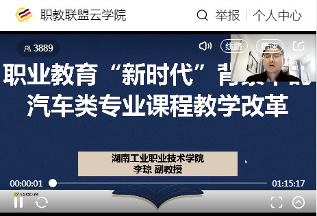 此次课程由职业院校教师素质提高计划湖南省2019年国家级培训专家李琼主讲,主题为““新时代”汽车类专业的课程教学改革”。