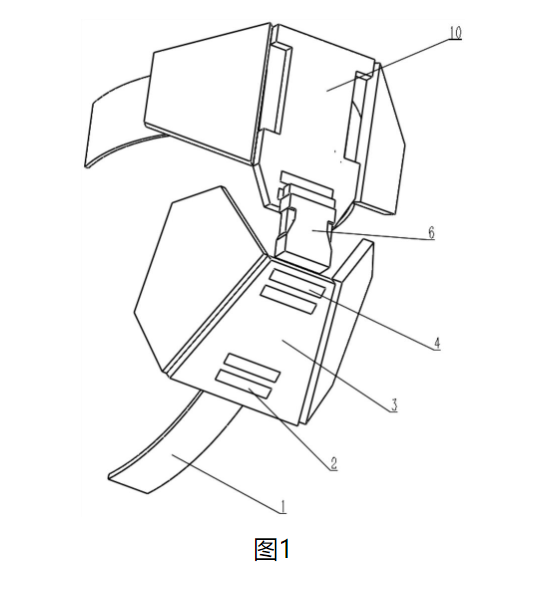 本实用新型公开了一种金属制军用抗冲击护肩,包括下壳体和上壳体,所述上壳体内部的下方开设有第一装配驳接孔,所述上壳体的底部通过所述第一装配驳接孔安装有第一连接织带,所述第一连接织带的底端安装有母插,所述下壳体位于所述上壳体的正下方,所述下壳体内部的上方开设有第二装配驳接孔,所述下壳体的顶部通过所述第二装配驳接孔安装有第二连接织带,所述第二连接织带的顶端安装有公插,所述公插的一端插入所述母插的内部,所述上壳体和所述下壳体均由钛合金层、玻璃钢层和记忆棉层组成,所述玻璃钢层位于所述钛合金层的底部。本实用新型通过设置一系列的结构使得本装置具有抗冲击力强和灵活性强的特点。