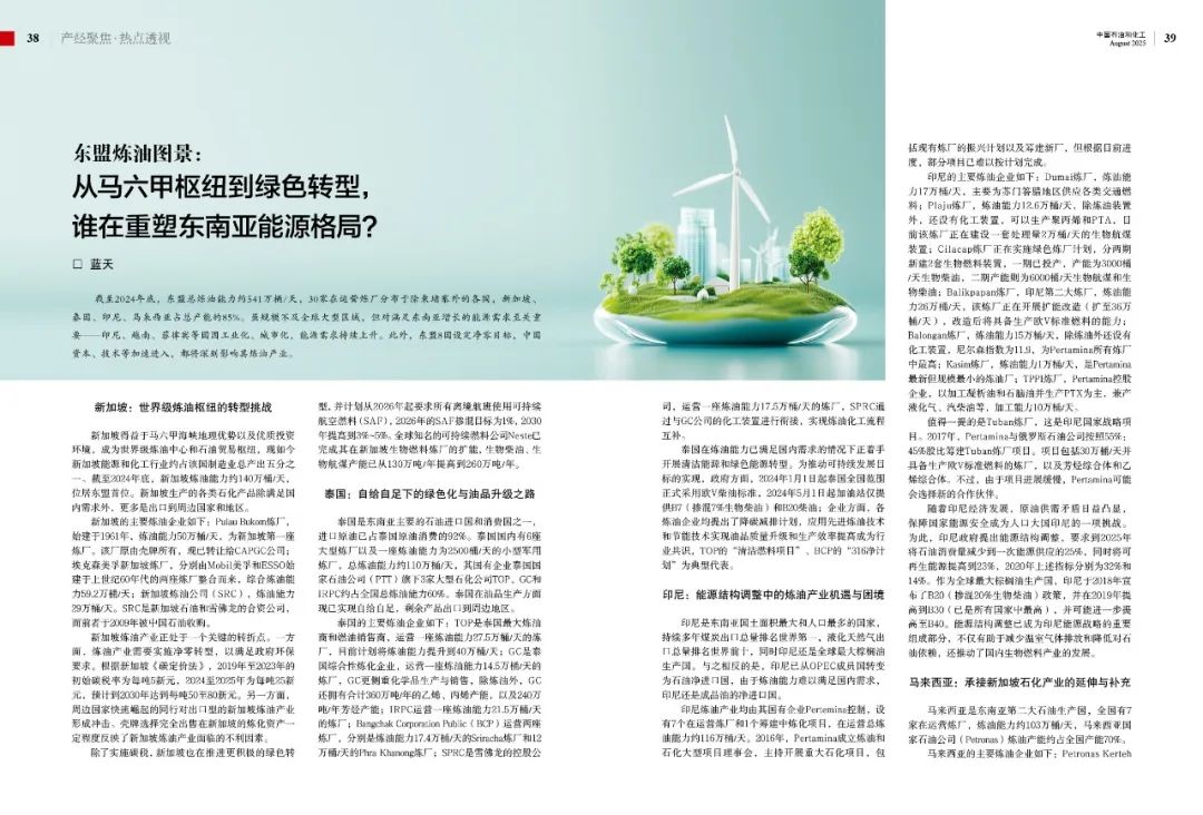 作为全球最大炼油国,中国既凭借领先的炼化一体化能力与成本优势,与东盟企业形成一定竞争;又通过投资、工程总包、技术输出等参与东盟炼厂建设与升级,助力其技术进步与产能扩张。同时,中国在绿色炼化、氢能、碳减排等领域的政策与技术,也为东盟提供了借鉴。在区域一体化与“一带一路”背景下,中国既是竞争者也是合作伙伴,深刻影响着东盟炼油格局。