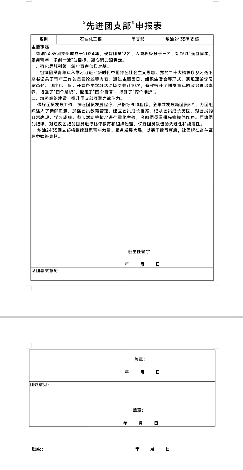 石油化工系优秀团支部(九)