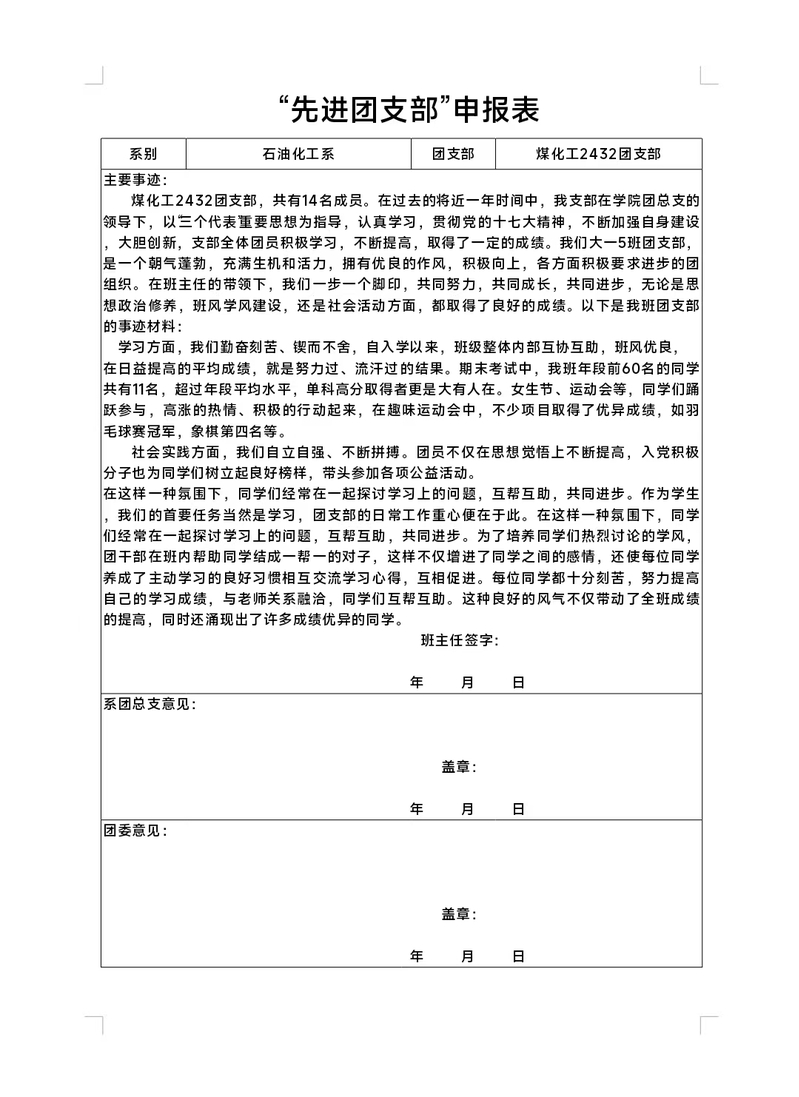 石油化工系优秀团支部(十)