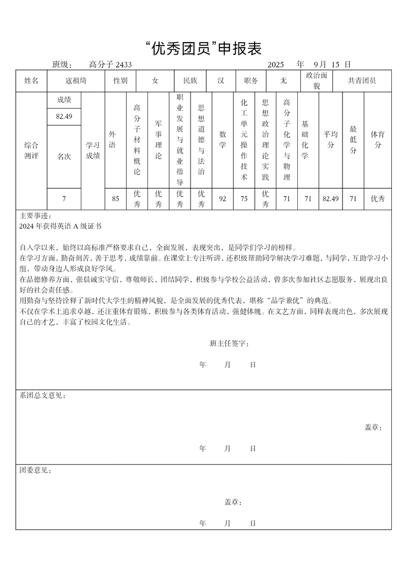 优秀团员(七)
