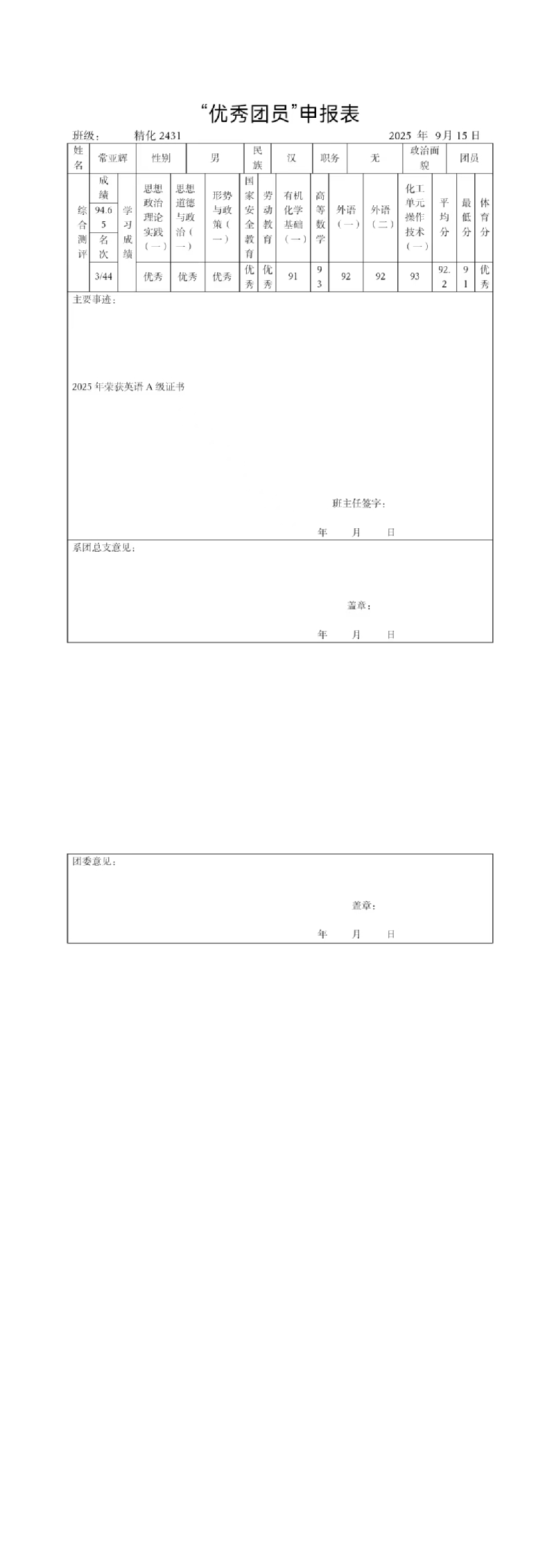 优秀团员(四十三)