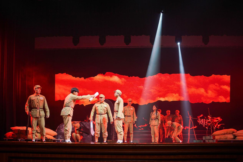 《红色的青春》话剧,从剧本到导演再到演员,全部任务均由渤海大学师生承担,剧目甄选抗美援朝这一重大历史事件进行艺术创作,立足红色资源、活化历史史料。整场演出,有喜欢科研的战士秀才、憨厚急躁的神射手小杨、幽默油滑的老兵老吕、战士“小锤子”、“指哪炸哪”的掷弹手强子,以及善良坚强的医护阿茂和小陈等等。秀才和小杨由于性情不合,在“猫耳洞”内发生争执,而后在与对方并肩战斗的过程中,逐渐理解了对方;战士小杨也在秀才改进步话机、创新炸药爆破等提升战斗力的过程中,认可了秀才,二人最终冰释前嫌,一同奔赴战场。故事豪情到极致、柔情到极致,既有革命先烈保家卫国的牺牲精神,又有科学家科技报国的情怀,同时还饱含浪漫主义色彩,真正实现了典型引领、德润心灵的育人效果。