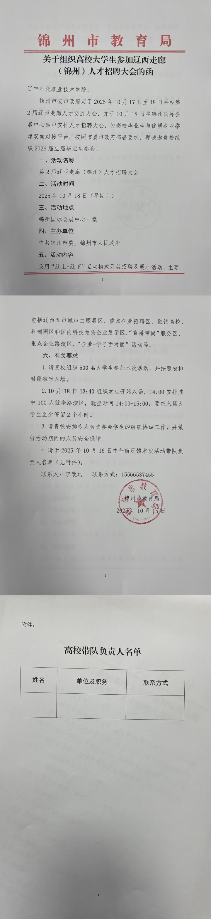 关于组织高校大学生参加辽西走廊(锦州)人才招聘大会的函