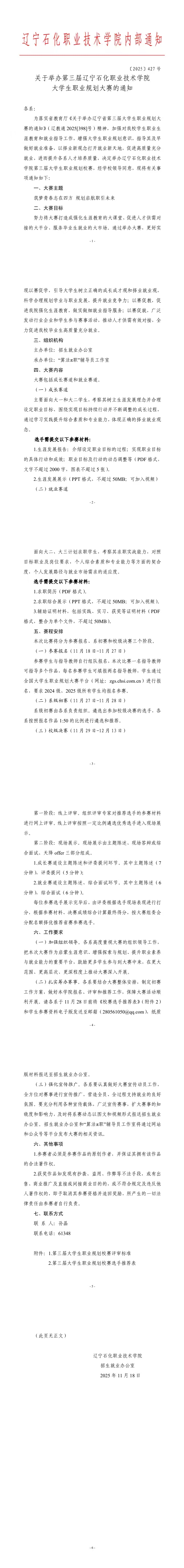 关于举办第三届辽宁石化职业技术学院 大学生职业规划大赛的通知