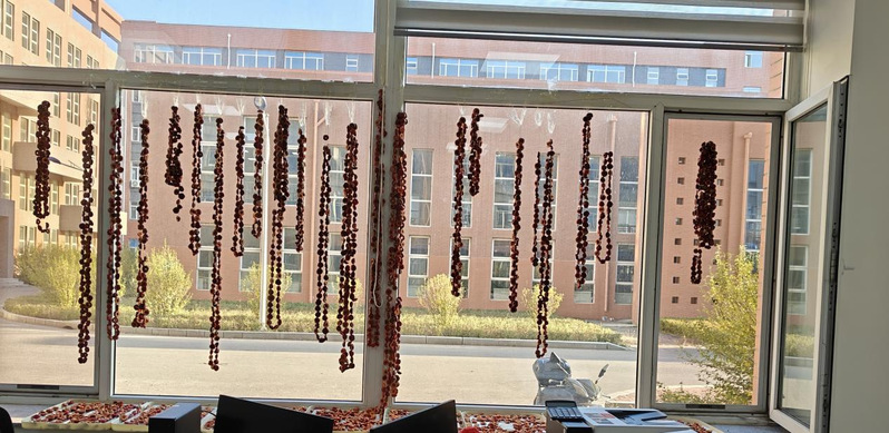 在辅导员的指导下,同学们分工协作,兴致勃勃地投入到山楂的制作过程中。从清洗、去核、切片、晾晒,每一个环节都凝聚着大家的耐心与智慧。“以前总觉得劳动离我们很遥远,但今天真的体会到劳动带来的成就感!”2024级学生一边晾晒山楂一边感慨道。活动中,同学们不仅掌握了食品加工的基本技能,更在协作中增进了友谊,深化了对“劳动创造幸福”的理解。