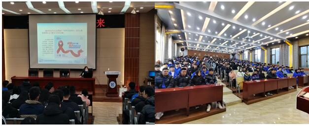 为了进一步推动学院深入开展预防艾滋病健康教育工作,提高学生对艾滋病的认知与预防,后勤服务与管理中心联合院团委开展了以“凝聚社会力量,合力共抗艾滋”为主题的系列宣传活动。聘请锦州市疾病预防控制中心的佐月副主任和艾滋病防治科黄丽平科长,为师生们开展“青春无艾,美好未来”艾滋病防治知识宣传讲座,300余名师生共同参与了此次活动。专家用通俗易懂的语言,实际的案例分析,以提问的方式与同学们积极互动,不断深入的引导学生了解艾滋病的预防方式与治疗方法,让大家不再谈“艾”色变。