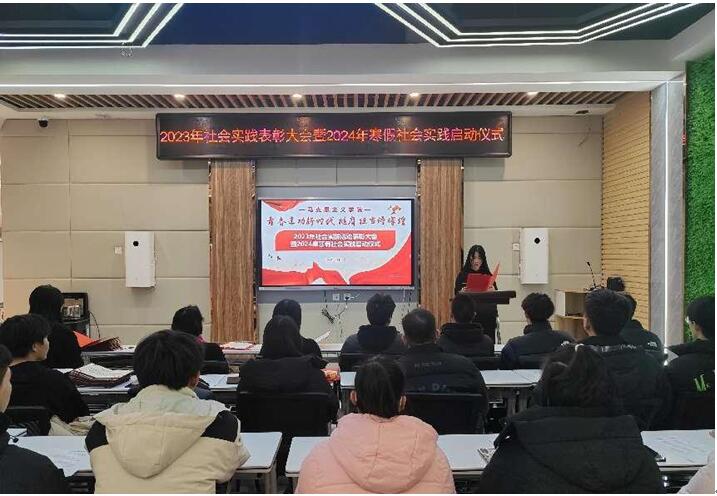 2024年1月12日,马克思主义学院在古塔校区3GT众创空间召开“青春建功新时代 挺膺担当铸辉煌 ”2023年社会实践活动表彰大会暨2024年寒假社会实践启动仪式。马克思主义学院党政负责人、马克思主义学院青年志愿者协会、文学社团、非遗传承社团、红色星火宣讲团成员代表、获奖学生参加此次大会。