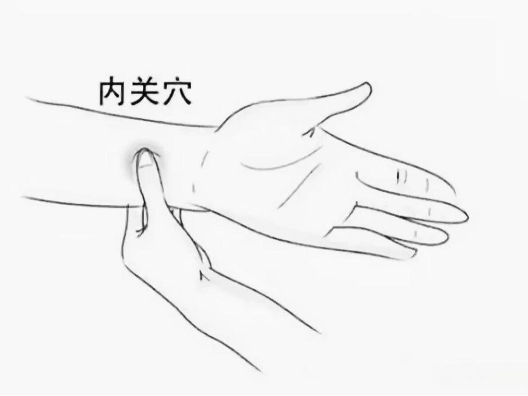 内关穴:位于手腕横纹上2寸,两筋之间。按摩内关穴可缓解焦虑、失眠等症状。