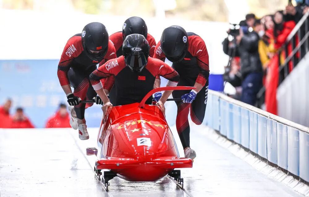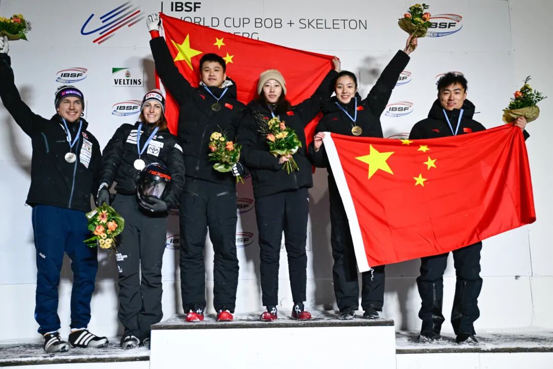 中国钢架雪车目前已跻身世界前列,尤其是在2024-2025赛季进步明显,赵丹(左四)填补了中国女子钢架雪车世界杯金牌的空白,赵丹/林勤炜(左三)还实现了中国队在钢架雪车混合团体项目的世界杯金牌突破、世锦赛奖牌突破。