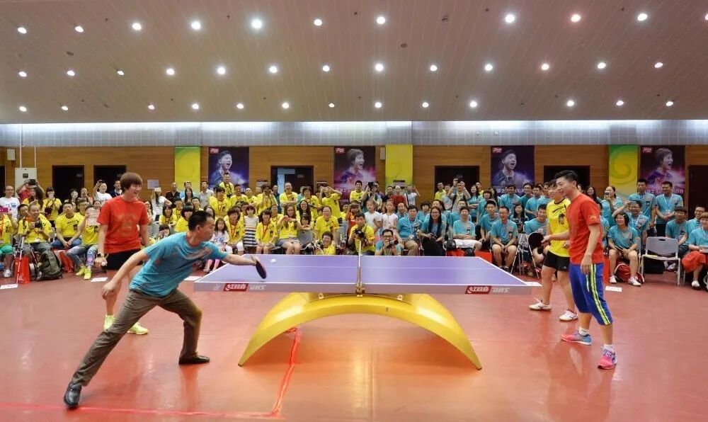 “一边拍照还一边和粉丝们交流,有人请教技术,马龙和丁宁毫不保留,并且亲自拿起球拍讲解动作要领,丁宁光是自己的下蹲发球就示范了不下10次,累得全身大汗。”