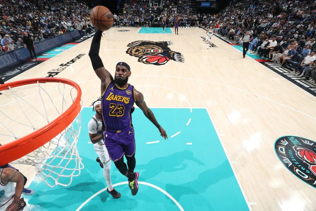 比赛开场不到两分钟时,詹姆斯溜底线接球暴扣得分。由此,他的生涯常规赛总得分突破42000大关。本场比赛过后,詹姆斯的常规赛总得分数来到了42020,其身后的贾巴尔该项数据为38387分。而相比于早已退役的贾巴尔,詹姆斯的生涯仍在继续,也就是说他仍将不断刷新该项纪录。除了常规赛总得分纪录,詹姆斯还保持着多项难以超越的NBA纪录:1、在不同的三支球队获得FMVP;2、总决赛的五项数据高居两队之首;3、连续20个赛季场均得分25+;4、各级千分档最年轻得主;5、季后赛总得分王;6、常规赛连续1284场得分上双(截止到2025年3月28日);7、入选20次最佳阵容;8、“411工程”(40000分10000篮板10000助攻)。
