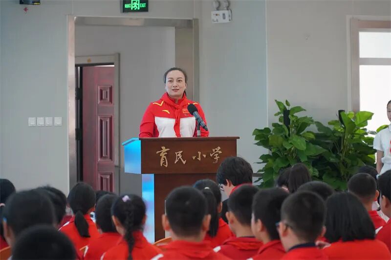 “希望你们把大梦想拆成小步骤,想当画家就每天画一幅画,想当运动员就每天跑一圈,所有厉害的本事,都是用坚持堆砌出来的。希望你们要有乐观的心态,摔倒了就爬起来,拍掉灰尘再试一次,你们的梦想赛场可能在书桌前、跑道上、画板上……”宣讲环节最后,李妮娜这样寄语同学们。