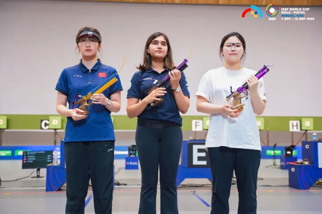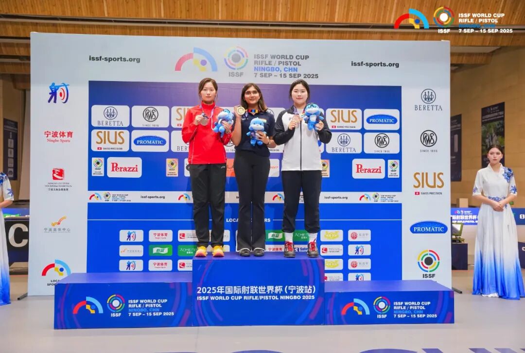 9月13日,2025年国际射联射击世界杯宁波站进入倒数第二个比赛日,中国选手姚千寻在女子10米气手枪比赛中摘得银牌。