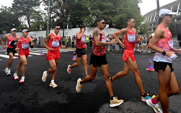 男子竞走赛场的争夺十分激烈,到了第25公里,周应成逐渐提升排名,并缩小差距,可惜距离前方选手有些远,未能登上领奖台。最终,加拿大选手埃文·邓菲以2小时28分22秒夺冠,获得个人职业生涯世锦赛首金,巴西选手卡约·邦菲姆获得银牌,东道主选手胜木隼人获得铜牌,首战世锦赛的周应成以2小时29分31秒获得第四名,队友张金睿和王钦未能完赛。赛后周应成表示,“赛前目标是进前八,达到了自己的预期目标。这是我第一次参加世锦赛,很想拿到不错的成绩。我从10多名开始往前追,追到第8名时,对自己就有信心了,到了第4名也很想继续追,但那时距离不够了,已经快冲线了,万一红牌罚下就得不偿失了。”