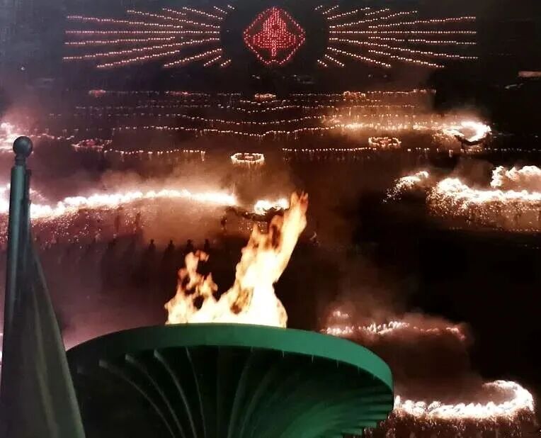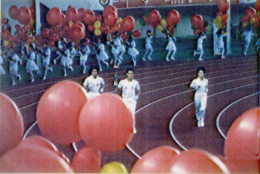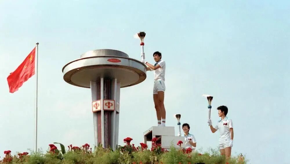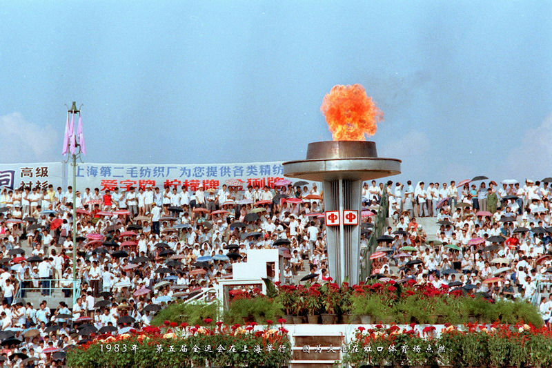 由朱建华手持“振兴中华火炬”点燃主火炬