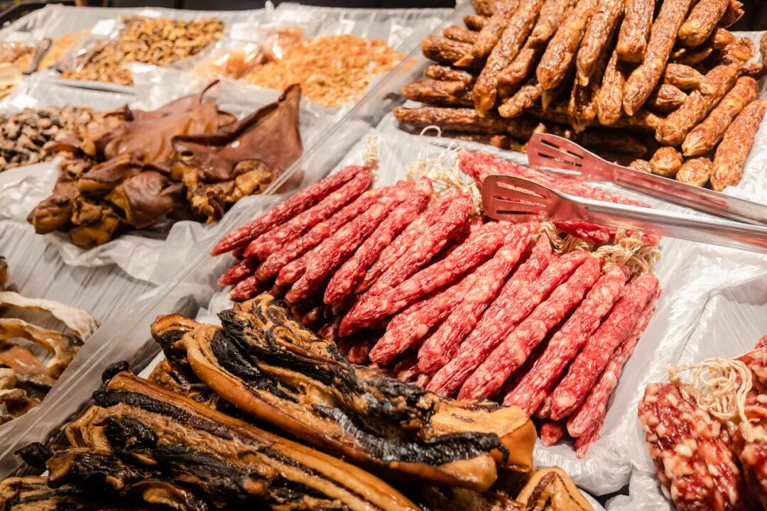 广式腊肉以猪的肋条肉为原料经糖盐腌制、烘烤而成;湖南、湖北和四川等地的腊肉一般经切条、配料、腌渍、洗盐、晾干和熏制六道工序加工而成,成品具有红似火、香浓郁、味鲜美等特点。此外,还有腊牛肉、腊羊肉、腊驴肉、腊猪头、腊蹄髈、腊猪肝、腊心、腊肠、腊鸡、腊鸭、腊鱼等腊制品。等到了春节,冬日储存食物也在这一刻更加具象化,年的味道在腊味的沉淀中越来越近。