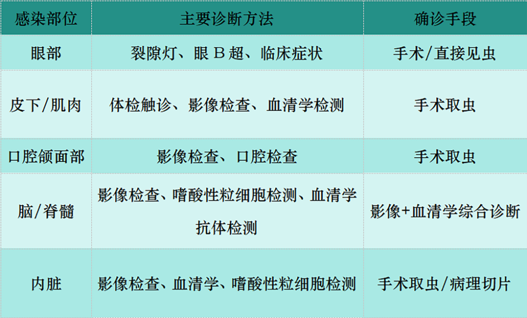 一旦出现可疑症状如不明原因的皮下包块、反复眼疾、头痛等,感到身体不适,务必到正规医疗机构就诊,科学治疗,勿信偏方。