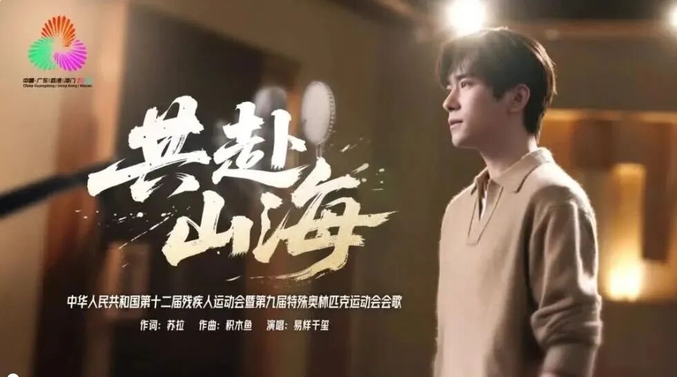 中华人民共和国第十二届残疾人运动会暨第九届特殊奥林匹克运动会会歌《共赴山海》由积木鱼音乐团队作曲,中国流行音乐协会会员、广东流行音乐协会理事苏拉作词;由青年演员、歌手易烊千玺倾情献唱,并携手粤港澳三地合唱团联合呈现。