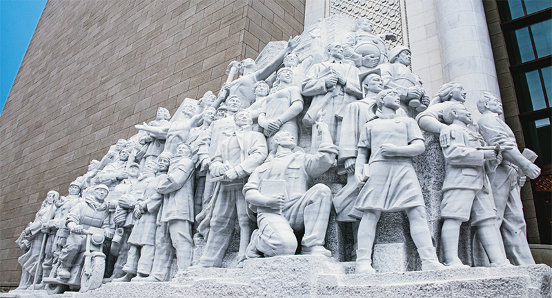 中国共产党历史展览馆广场上矗立的《信仰》、《伟业》、《攻坚》、《追梦》四组大型雕塑,讲述着中国共产党100多年来为中国人民谋幸福、为中华民族谋复兴的奋斗历程。图为雕塑《伟业》,共塑造65位人物形象,涵盖不同群体、不同职业,重点反映中国共产党团结带领全国各族人民,坚定“四个自信”,奋发图强、艰苦奋斗,推动中国特色社会主义事业不断取得历史性成就。 刘新武/摄