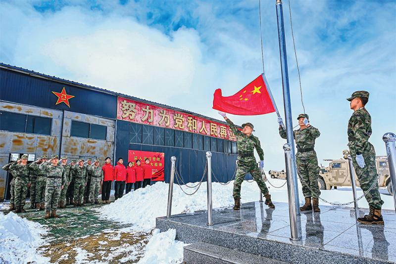 思政课不仅应该在课堂上讲,也应该在社会生活中来讲。图为2025年4月29日,中国人民大学师生赴西藏自治区日喀则市开展“大国边疆”思政调研,走进“高原戍边模范营”哨所,与官兵共同举行升旗仪式。 北京市委教育工委供图