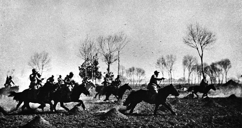 抗日战争期间,八路军深入敌后战场,英勇战斗,取得平型关大捷、百团大战等重大胜利,牵制和消灭了侵华日军大量兵力,是中国抗战的中坚力量。图为战斗在敌后的八路军骑兵(1941年摄于冀中)。 新华社发