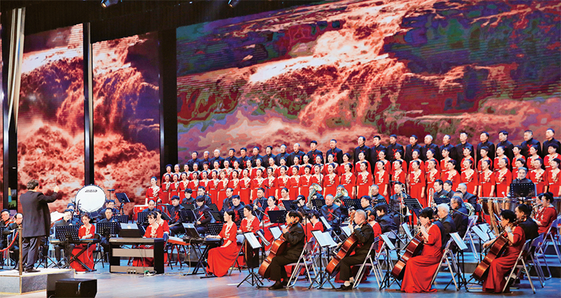 在中国人民抗日战争暨世界反法西斯战争胜利80周年之际,镌刻民族记忆的《黄河大合唱》等经典旋律再度激荡人心。图为2025年8月20日在江苏连云港演出的大型红色抗战主题《黄河大合唱》音乐会现场。 视觉中国 朱华南/摄