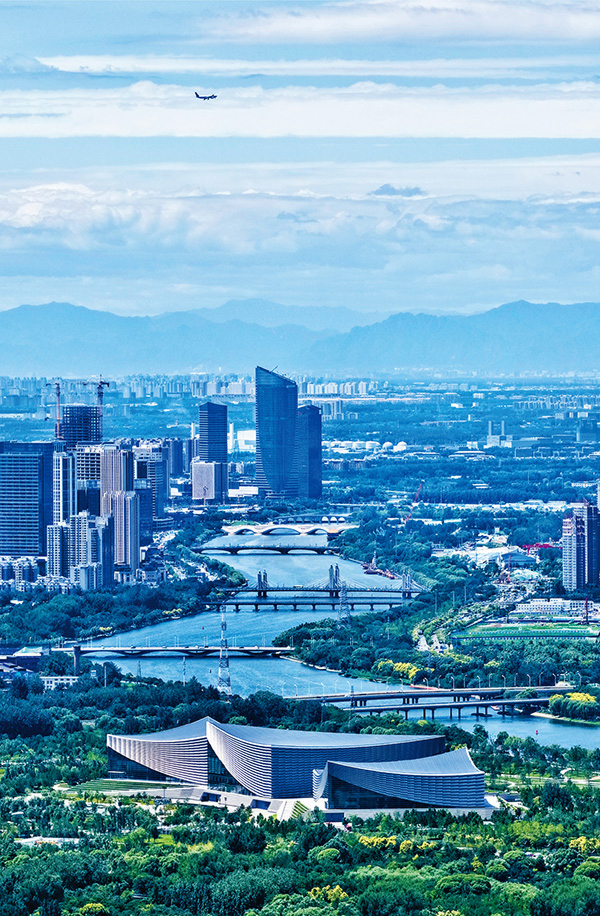 新时代以来,美丽中国建设迈出重大步伐。北京通过持续治理大气污染,推动空气质量显著改善。2024年,北京空气质量优良天数达290天,占比近八成,创下新纪录。图为2025年7月5日拍摄的从北京通州大运河到大西山的景象。 马文晓/摄