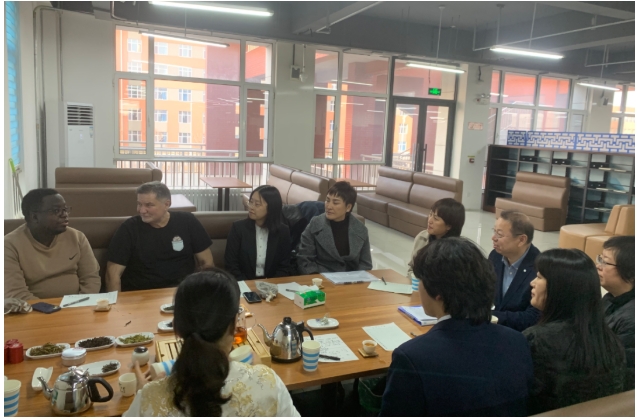 座谈中,訾薇聚焦外教生活情况,细致询问两位教师在衣食住行等方面的需求与困难,叮嘱相关部门做好后勤保障,让外籍教师在异国他乡感受到学校的温暖。刘朝辉则从教学工作切入,与外教深入交流课程开展情况,围绕课程优化、中外教学方法融合等问题交换了意见。