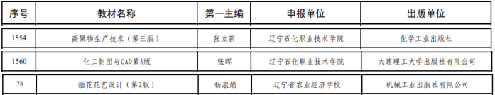 近日,教育部发布《关于公布第二批“十四五”职业教育国家规划教材书目的公告》,我校组织申报的《高聚物生产技术(第三版)》《化工制图与CAD第3版》《插花花艺设计(第2版)》3部教材成功入选,充分彰显了我校在职业教育教材建设领域的深厚积累与突出成效。