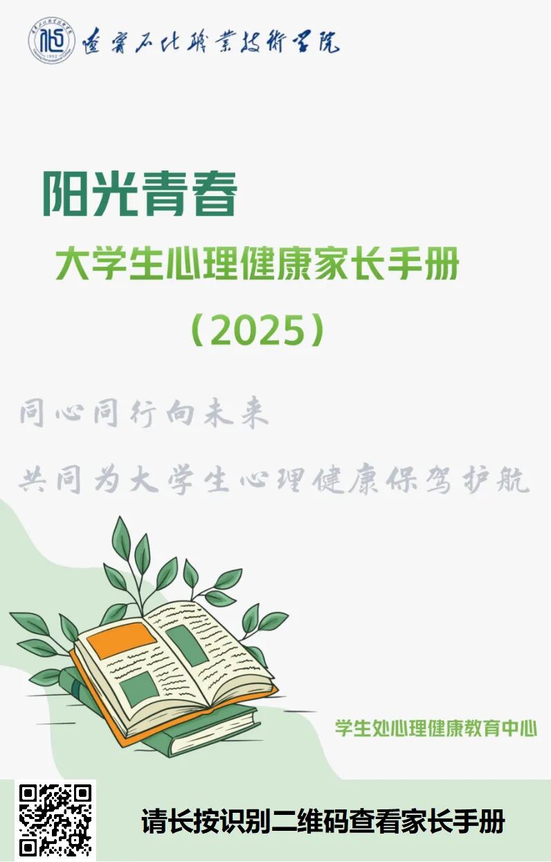 为了让我们之间的这份陪伴更及时、更贴心,诚挚邀请您关注“辽宁石化职业技术学院学生处”官方公众号。在这里,2025级新同学能随时获取心理支持资源与心理辅导活动信息;家长朋友们可以同步了解学校的心理健康服务动态,收获更多亲子沟通与成长引导的实用资讯。