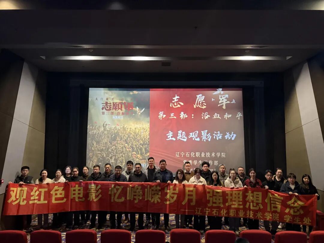 为铭记抗美援朝战争之历史,教育并引导广大教师传承和弘扬抗美援朝精神, 党委学生工作部于10月25日中国人民志愿军抗美援朝出国作战75周年纪念日当天,组织学生系统管理人员赴锦州市工人文化宫电影院开展观红色电影,忆峥嵘岁月,强理想信念主题活动,共同观看红色影片《志愿军・浴血和平》。